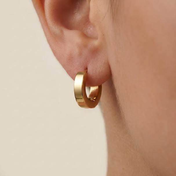 Praticidade e estilo diário com a Argola Basic da Orla da Luz, com banho em ouro18k e verniz italianopara durabilidade e brilho constante.